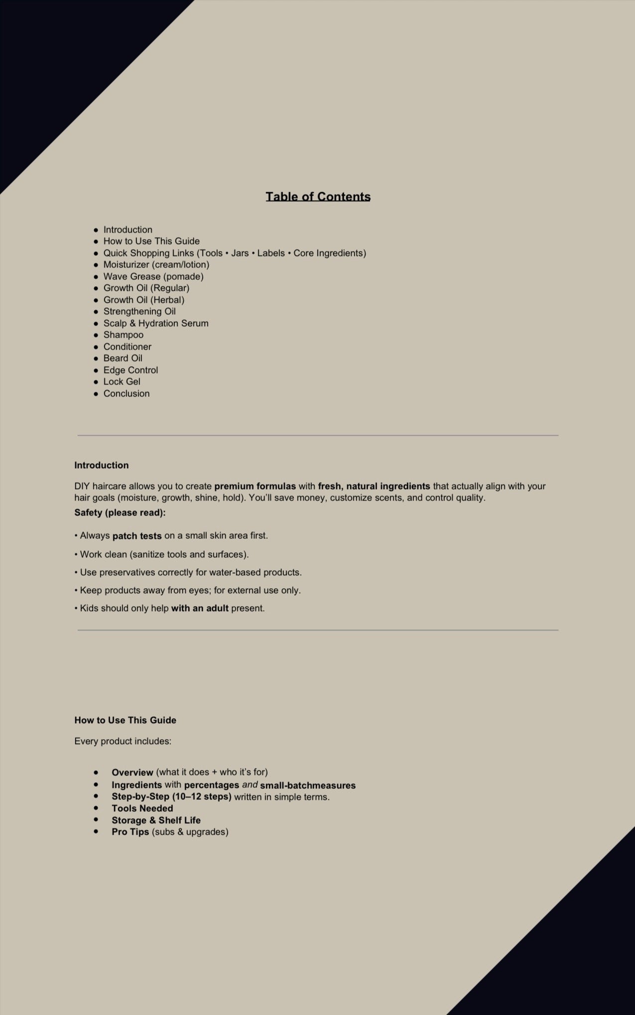 Every formula, recipe, and technique is written step-by-step, beginner-friendly, and designed so you can start making high-quality haircare products right at home.